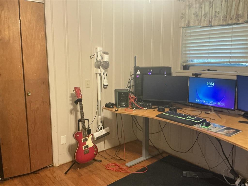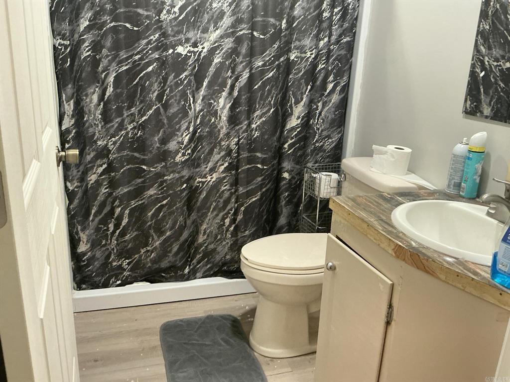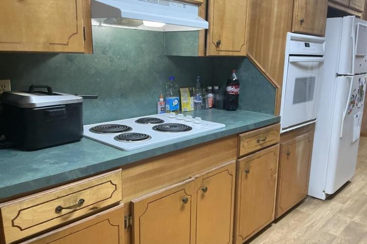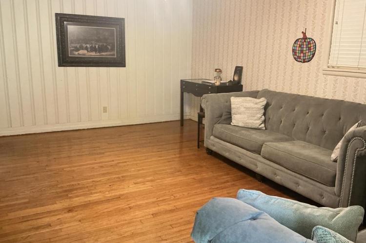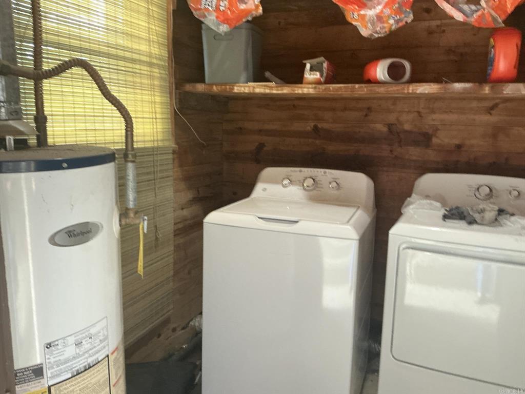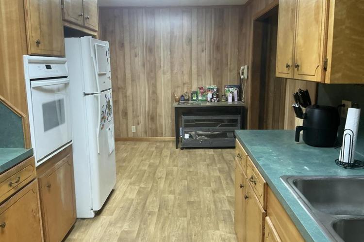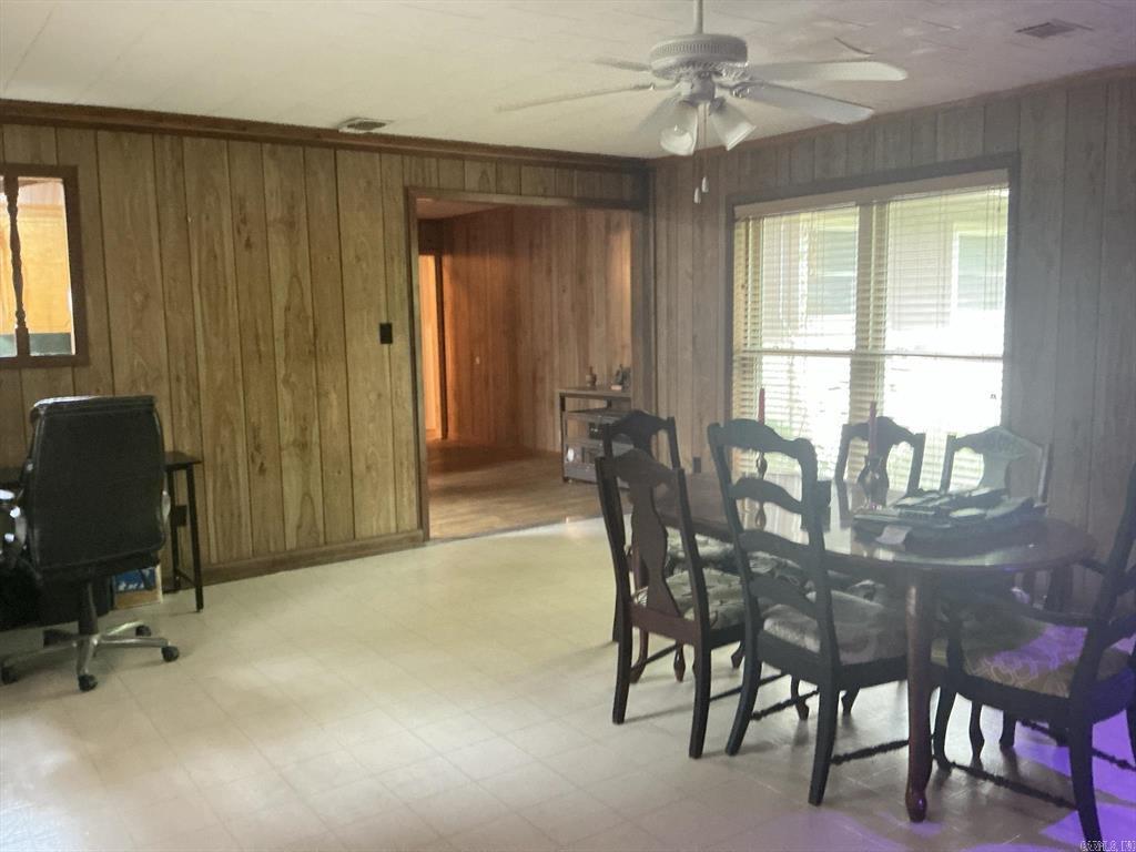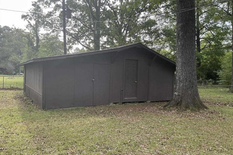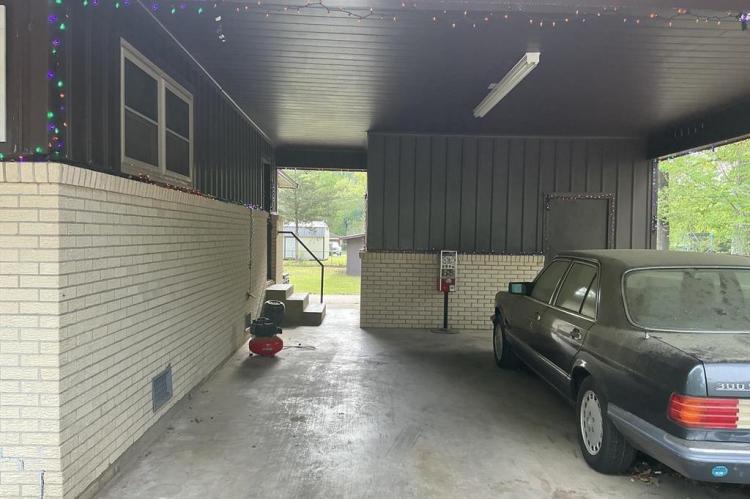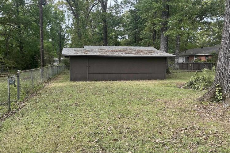 Lovely home featuring formal living/dining room and a large den with a fireplace,(heater in front of fireplace now hooked to gas, making it easy to install gas logs), vinyl flooring in the galley kitchen with refrigerator and stove and a eating area. In the living room, hallway and three bedrooms have beautiful hardwood floors. The three bedrooms have good size closets also. The hall bath has a walk-in shower and the master bedroom has a half-bath. Home has central heat and air, laundry room is in storage roof off the double carport, and another storage room off double carport. The large backyard is fenced and has a large shop. This is one home you must see to know all the features.