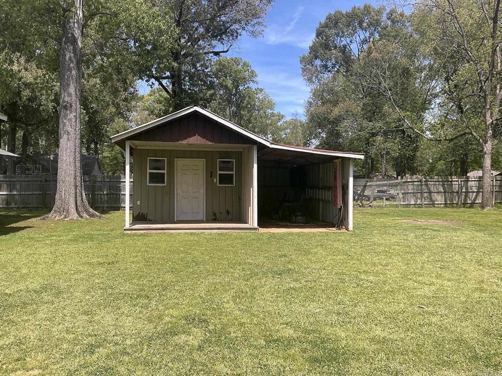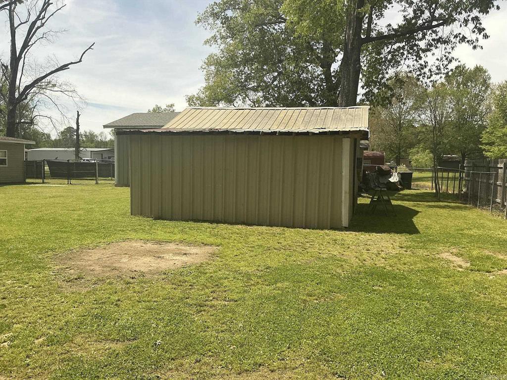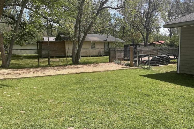 Open space concept with the living room, dining room and kitchen all open to each other with large windows, kitchen features a freestanding stove, refrigerator does not remain, walk-in pantry, space and wiring for a dishwasher, but no dishwasher, hall bath with a largewalk-in shower, three bedrooms, a large laundry room, Covered patio porch, a large fenced in back yard, a tool shed with a carport andporch, and a large insulated shop with office and window unit that heats and cools. Central unit is 1 1/2 years old, roof is 2 years old, wiring redone 8 years ago in the house, 2 extra electricity in laundry room and bathroom, and extra insulation added to the house. Great starter home, retirement home or anyone wanting a shop to have a place to do their extra work. This is one you must see.